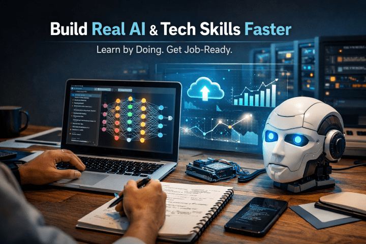 Whether you’re learning AI fundamentals, machine learning, data analysis, programming, or cloud technologies, the emphasis stays the same: apply skills, don’t just study them.